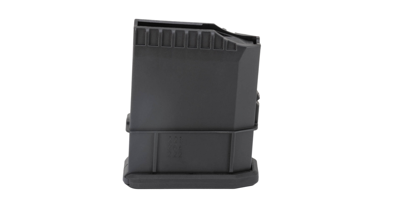 These detachable replacement magazines are constructed from tough, black polymer and fit Howa 1500 Mini Action rifles chambered in .223 Remington, .222 Remington and .204 Ruger.
