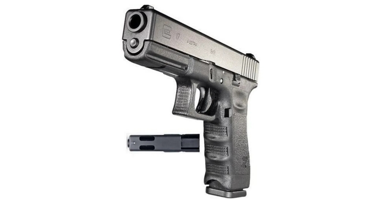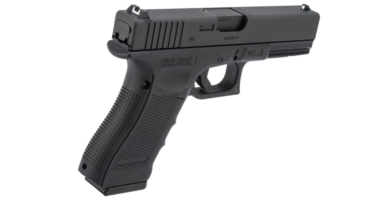 GLOCKĀ full-sized G17. This licensed CO2-powered airgun version is an authentic replica with the exact dimensions and markings of the original. It fires 4.5-mm steel BBs with a maximum of 2 joules, and the blowback gives you a powerful recoil.
