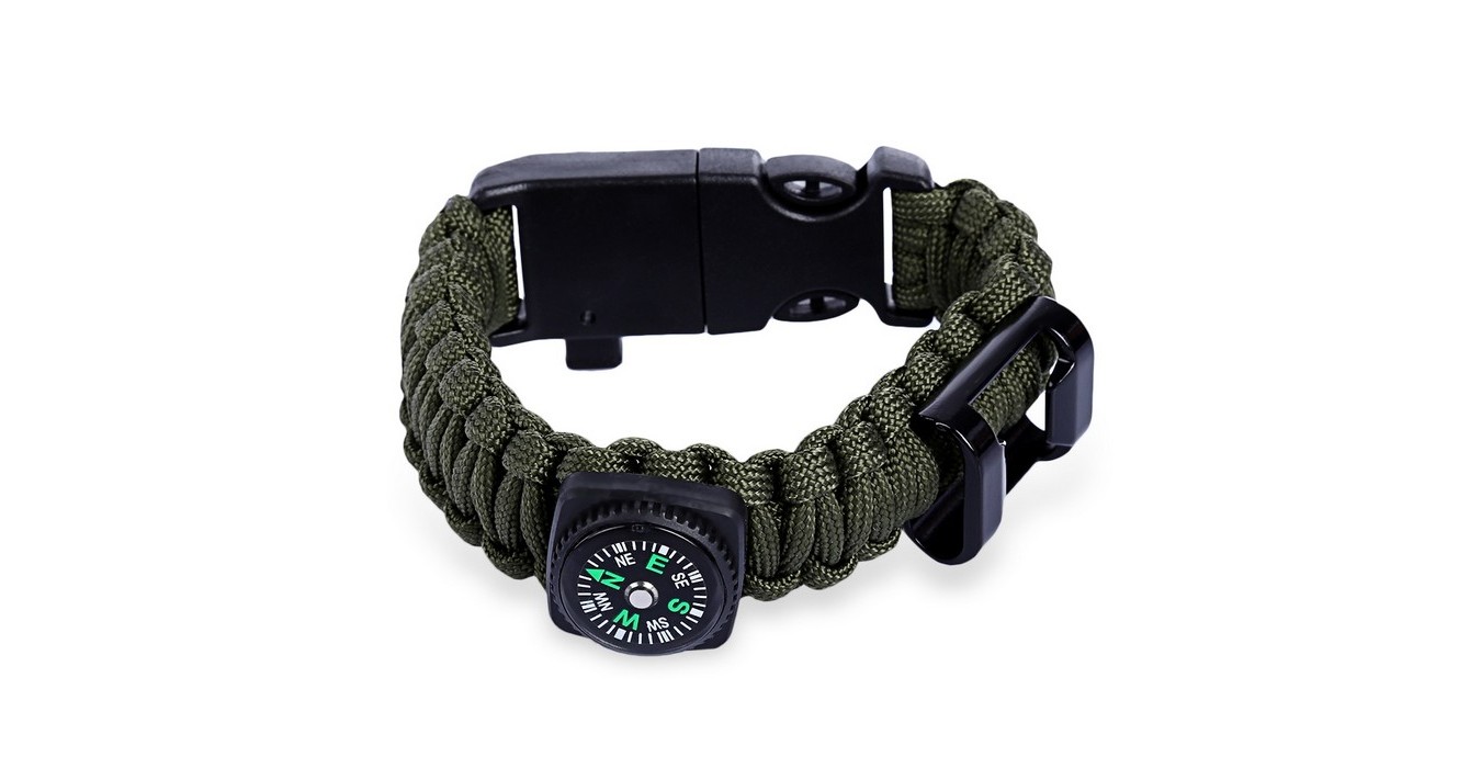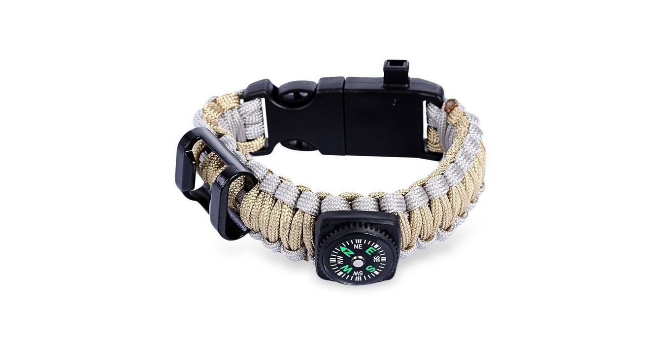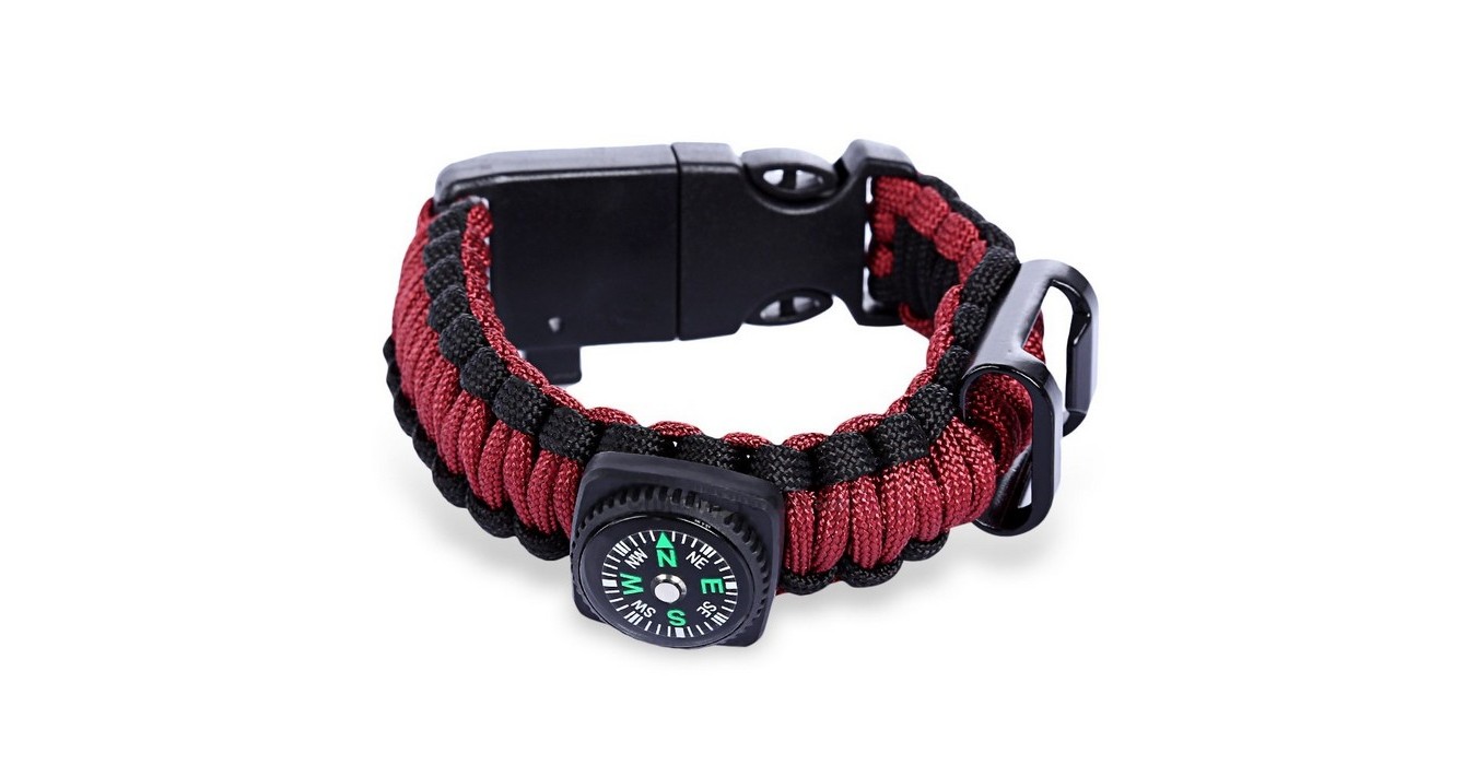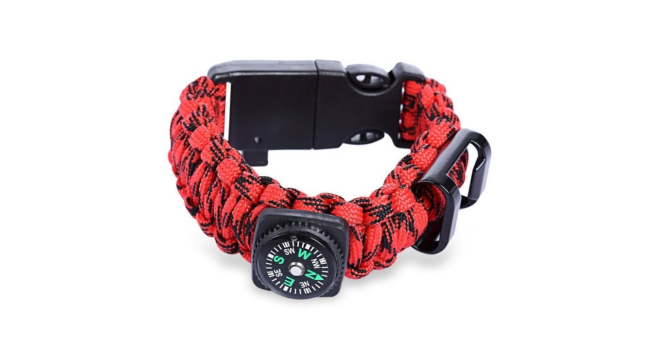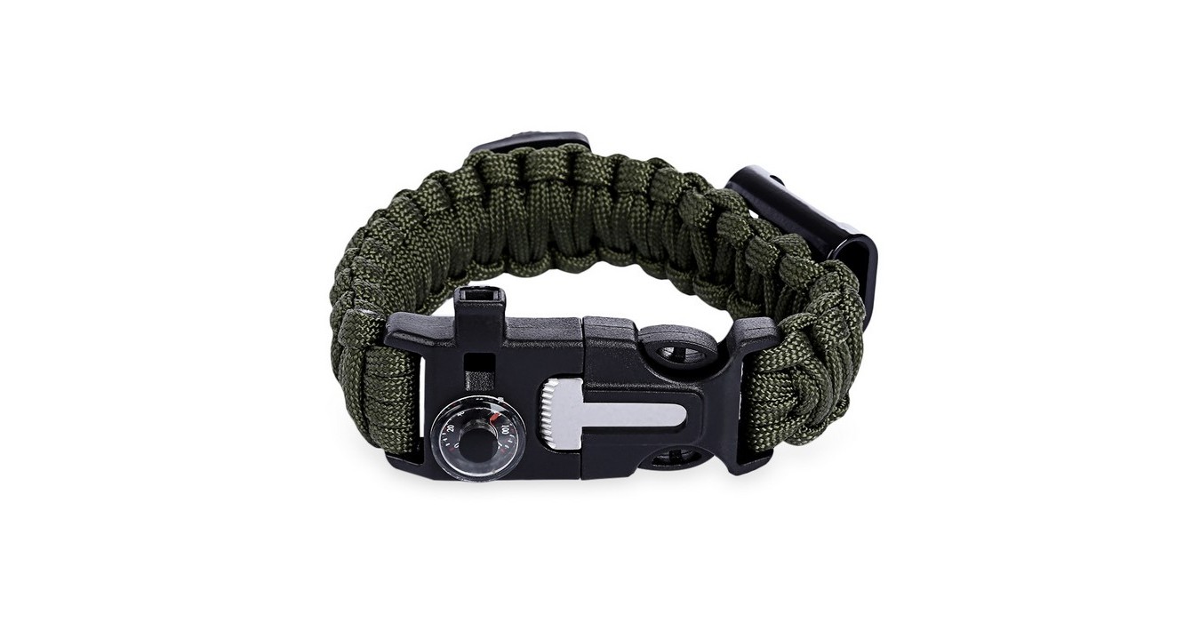 Paracord Bracelet With Fire Starter, Thermometer, Compass & Bottle Opener