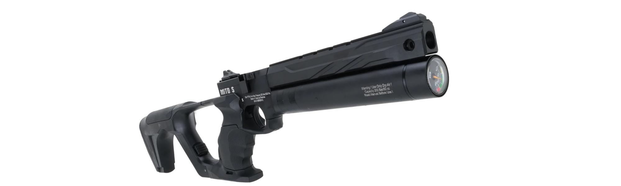 This is the NEW Reximex Mito PCP Air Pistol – Synthetic Black .22 (with removable shoulder stock).