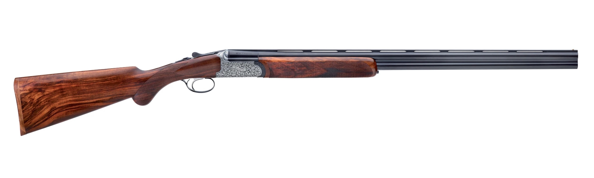 Single selective trigger, ejectors,screw-in flush chokes, ventilated rib, coin or color case-hardened frame, engraving,cased.